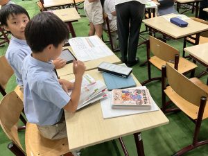 毎週月曜日の4時間目に行われている、3・4年生合同の探究の授業。先月は保護者サポーターのお二人に貴重なお話を聞き、今日は久しぶりに自分の探究を進める時間となりました。
