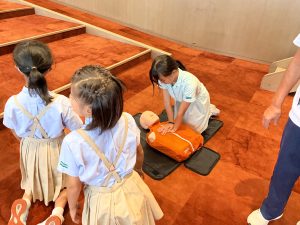 ボランティア委員会の児童が、赤十字による救急法の講習を受けました。