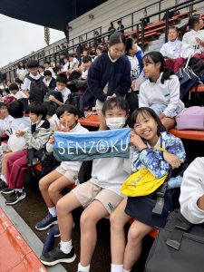 本校からは5年生と6年生が出場し、100メートル走や走り幅跳び、ソフトボール投げなど、それぞれの種目で自己記録の更新をめざしました。スタートラインに立つ表情は真剣そのもので、競技を終えたあとはほっとした笑顔が広がります。