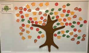 1階の掲示板には、「なぜの木」が飾られています。2年生が、自分の中のなぜを掲示しています。