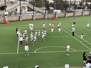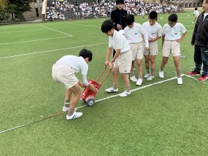 そして今年の目玉は何と言っても午後に行われるたてわりドッジビーです。これは児童会が中心になって企画、運営する種目です。児童会としても初めての経験なので、手探りの状態で計画を進めてきました。そして迎えた本番当日。専用のコートのラインを引いたり審判をしたりと円滑な運営に力を尽くしました。そのおかげもあり、児童みんなが楽しめる楽しい時間になりました。