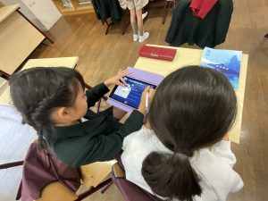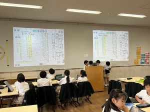 次は、牛乳や小麦といった自分が調べたい食品を見つけ、1から自分たちでまとめていきます。子ども達は「今日から食べ物調べるんでしょ?」「カカオ豆にしてもいい?」と、授業の前から楽しみにしている様子でした。そんな子ども達が調べてまとめたものの発表は、いつも面白くてクラス内の発表だけでは惜しい出来になっています。