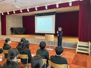 本校の6年生カリキュラムでは、1学期に「世界地理」を学習しますが、その中に「国連」の単元があります。この学習時には、様々な国連の主要機関や専門機関を学びましたが、併せて国連の行なっている支援活動も学びました。授業時に「もう少し詳しく知りたい」という声があったため、講演のお願いをしました。