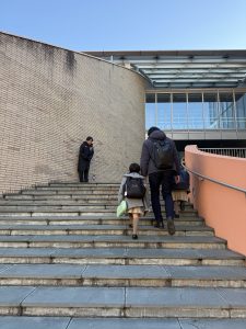 朝の冷たい空気の中、今日も子どもたちは元気に登校しています。