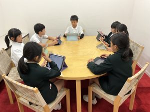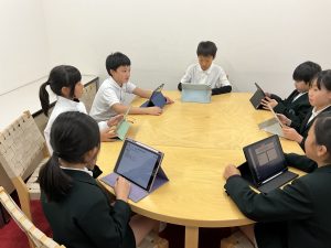 この日は、昼休みに第1回目の話し合いが行われました。事前に、どのような出し物にしたいかを考えてきていたので、それぞれの考えを紹介してまとめていく活動となりました。チームでの話し合いをして、意見をまとめていく活動は3年生のころからたくさん取り入れてきた学年なので、この日も短時間ながら有意義な話し合いができました。今回決まったのは、どういった出し物にしていくかの方向性です。