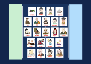 前回は、弥生時代の卑弥呼から平安時代の清少納言まで、11枚の取り札で活動しました。今回はさらに、鎌倉時代の源義経から安土桃山時代の豊臣秀吉までを追加し、取り札は22枚に増えました。